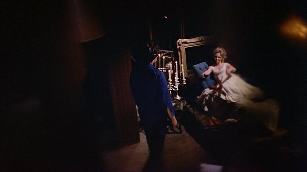 And as for what's different in the descriptions and directions, at the outset of Scene 90, we do not see Tracy and Quentin asleep in the background because the scene begins immediately with a shot of the Tower Room visible through the window, and it isn't until after we see the glow appear in the Tower Room windows that we see Quentin and Tracy asleep - and almost immediately upon seeing them we see Quentin open his eyes, but he doesn't look at the Tower Room immediately because he simply stares into space for several beats before he begins to sit up in bed and then turn toward the direction of the window - and we do not see Quentin actually get out of bed, or put on his robe, or exit the room. And when it comes to Scene 91, a dressed Quentin is seen walking away from the camera before he turns to begin to go up a set of stairs - and then we see his P.O.V. as he makes his way -