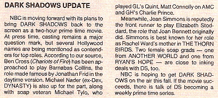 The problem I personally have with this is if you are having original DS cast members doing reenactments for the show, I personally cannot accept ANYONE doing Barnabas except Jonathan, but again, this could be because I am primarily a fan of Jonathan and Lara rather than of the show as a whole.