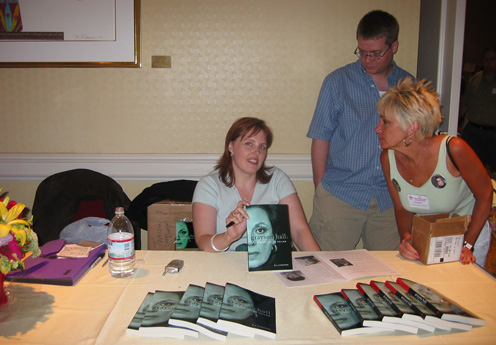 Nancy Barrett reads from Grayson Hall, A Hard Act to Follow during RJ's presentation