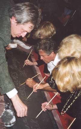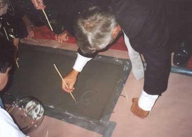 waiting for the cement to be less wet: Pennock, Barrett, Millay ![]() still waiting: Storm, Millay, Parker, Selby ![]() Selby testing the cement ![]() Vista manager oversees as Barrett, Storm, Millay, and Parker sign ![]() |